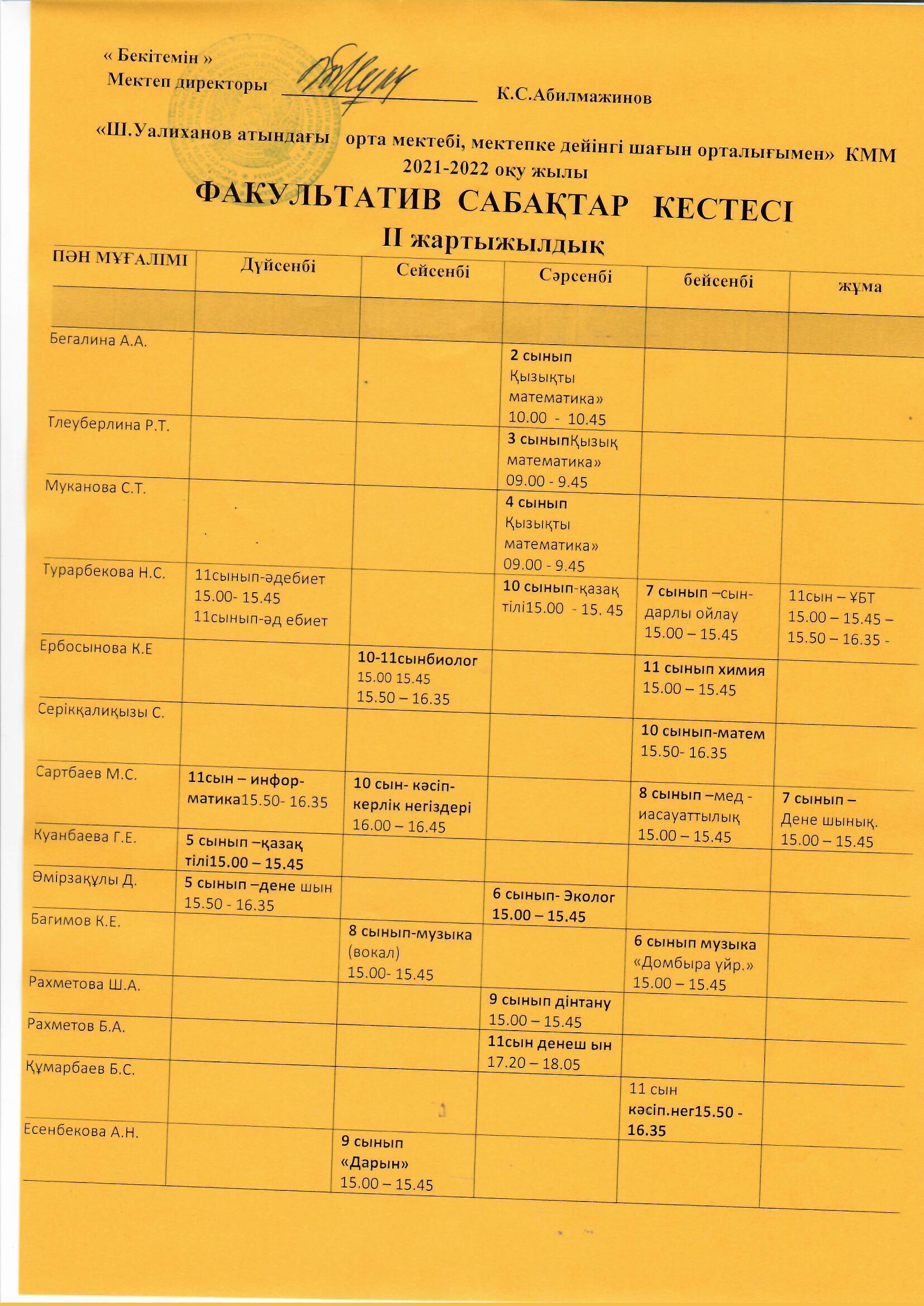 сабақ кестесі 2021-2022 оқу жылы » "Шоқан Уалиханов атындағы орта мектебі, мектепке дейінгі шағын орталығымен" Education Department of Kerbulak district