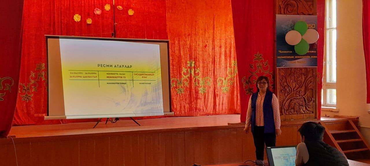 Ш.Уалиханов атындағы орта мектеп Ұлы дала елі рәміздердің заңнамаларымен және ҚР Мемлекеттік рәміздерінің ұлттық стандарттарымен таныстыру семинары өтті