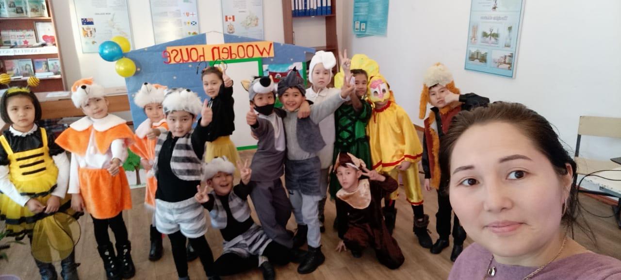 04 март 2022 0 1 2 3 4 5 «Ертегілер елінде» атты шарада оқушылар ағылшын тілінде сөйлеп, ертегілерді сахналады.