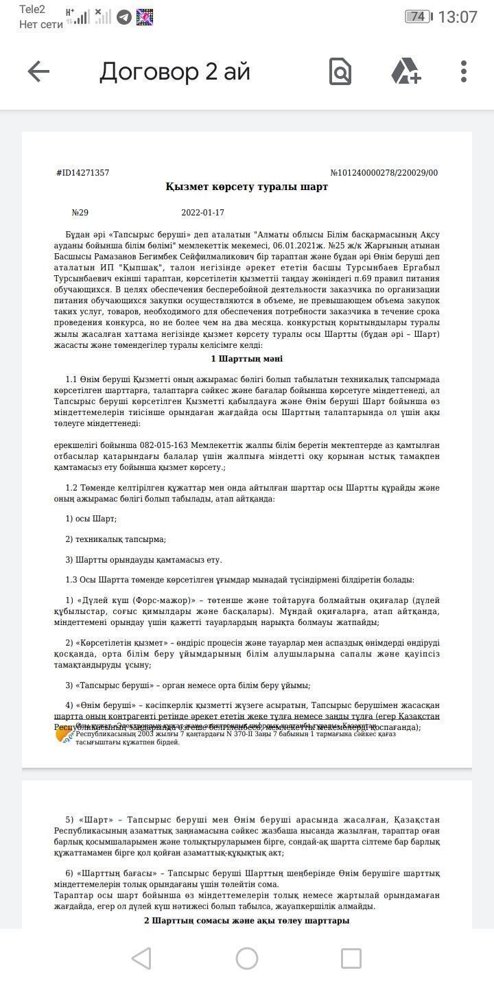 17 январь 2022 0 1 2 3 4 5 Алматы облысы Ақсу ауданы бойынша білім бөлімі мен ИП "Қыпшақ" арасындағы келісім шарт