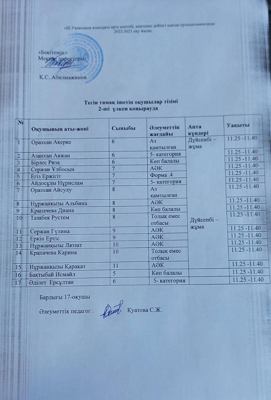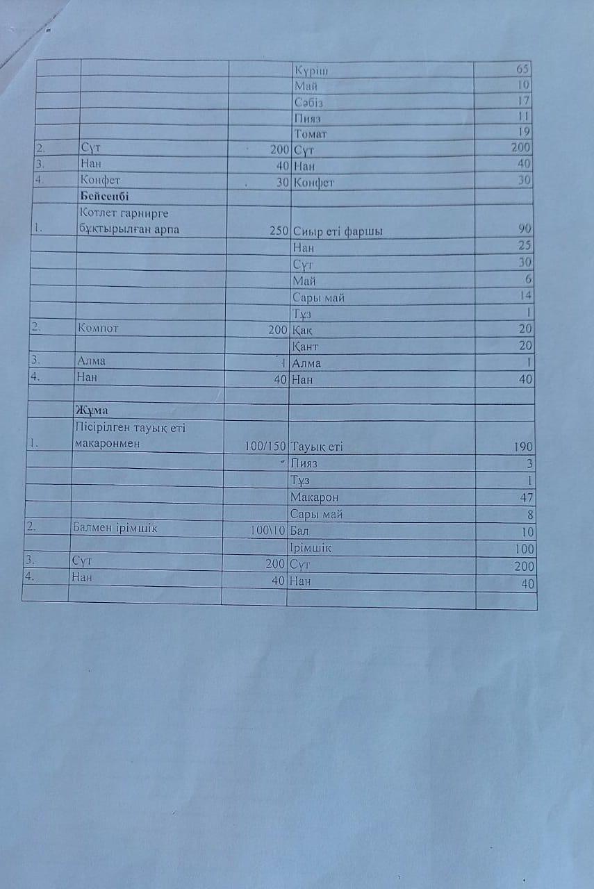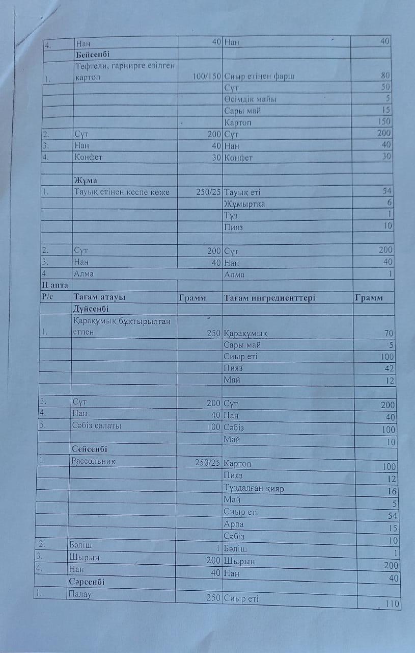 Ыстық тамақтың ұйымдастырылуы » "Шоқан Уалиханов атындағы орта мектебі, мектепке дейінгі шағын орталығымен" отдела образования Кербулакского района
